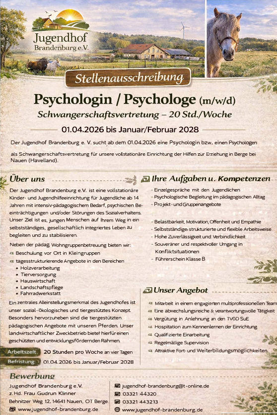 Psychologin/ Psychologe (m/w/d) für Schwangerschaftsvertretung